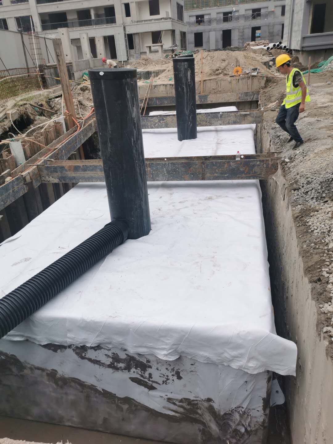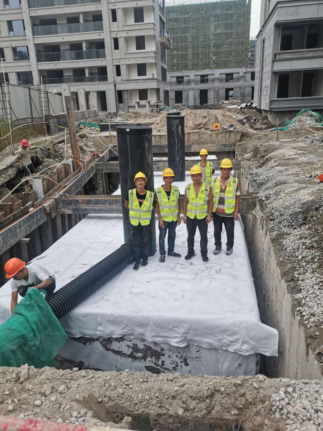 該項(xiàng)目雨水回收系統(tǒng)采用地埋PP模塊組合水池的方式收集雨水,前期經(jīng)過(guò)截污掛籃、棄流過(guò)濾,后期通過(guò)地埋一體機(jī)過(guò)濾,消毒,最終使水質(zhì)達(dá)到規(guī)范標(biāo)準(zhǔn),用于廠區(qū)綠地的澆灑,景觀補(bǔ)水,道路沖洗。